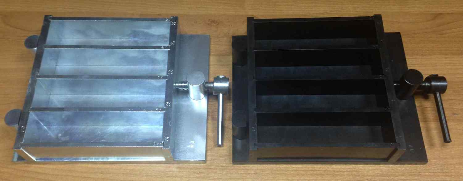 Форма балочек 4ФБ-40 (40х40х160) предназначена для изготовления лабораторных образцов балочек при определении предела прочности при изгибе и сжатии.