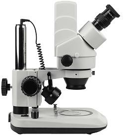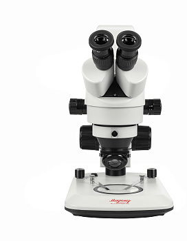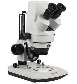Микроскоп имеет схему Грену и для наблюдения стереоскопического эффекта снабжен двумя объективами, расположенными под углом к плоскости исследуемого предмета. Объективы имеют переменное увеличение от 0.7х до 4.5х с сохранением точной фокусировки на всех увеличениях.