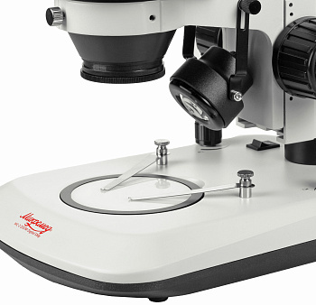 Для подсветки непрозрачных и полупрозрачных объектов микроскоп оборудован осветителем отраженного света с коллекторной линзой. Дополнительно микроскоп может быть укомплектован бестеневым кольцевым осветителем, устанавливаемым вокруг блока объективов, и точечными осветителями на гибких держателях. Осветитель проходящего света встроен в основание. Для размещения объекта исследования применяются круглые вставки, устанавливаемые в гнездо основания. В качестве источника в обоих осветителях используются 3 Вт светодиоды с белым спектром излучения с независимой регулировкой яркости.