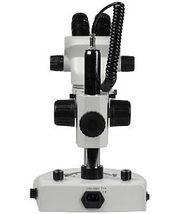 Благодаря схеме Грену микроскоп имеет компактные размеры и занимает минимум рабочего пространства. Основание микроскопа и корпус визуальной насадки изготовлены методом литья под давлением из алюминиевого сплава с антистатическим покрытием. Штативная штанга из полированной стали с покрытием хромом. Конструкция гарантирует надежность и устойчивость конструкции, точность настроек и длительный срок службы микроскопа.