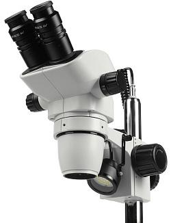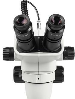 с ними составляет от 6.7х до 45х. Окуляры имеют конструкцию с вынесенным выходным зрачком и снабжены собственным механизмом диоптрийной коррекции. Для микроскопа доступны дополнительные окуляры с увеличением до 20х.