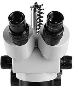 - Панкратический объектив позволяет в процессе наблюдения плавно изменять увеличение в 6,7 раз без потери качества и с сохранением рабочего расстояния - 113 мм, а с насадкой 0,5х - 177 мм.