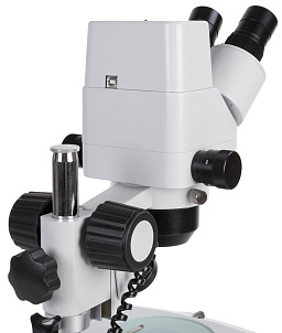 Конструкция визуальной насадки микроскопа МС-2-ZООM Digital позволяет выводить изображение в режиме реального времени на экран ПК с помощью встроенной камеры 1,3 МП. Таким образом можно одновренменно проводить исследование через окуляры и на экране. В отличии от тринокулряных моделей стереомикроскопов, у которых производится переключение светового потока с левого тубуса на вертикальный выход, МС-2-ZООM Digital в режиме включенной камеры позволяет производить наблюдение обоими глазами.