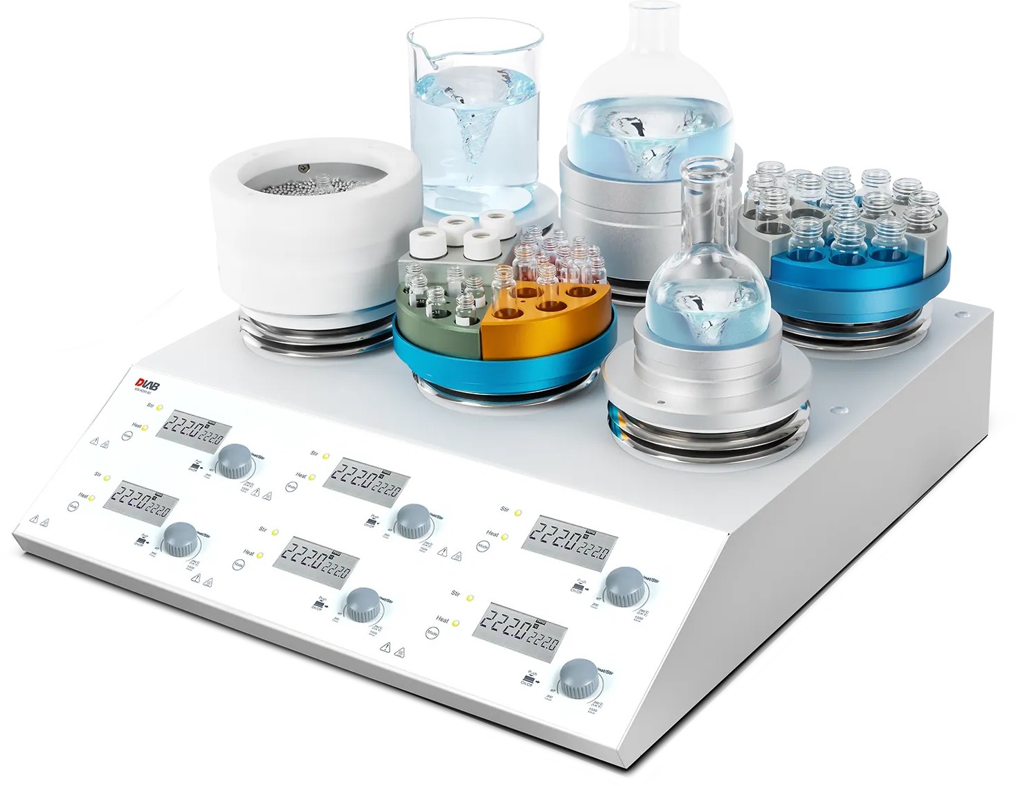 - 4/6 каналов с независимым управлением запуском/остановкой, температурой, скоростью и дисплеем для лучшего управления параллельными экспериментами.