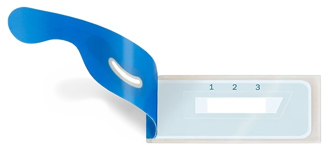 - изменение окраски теста с желтого на красный/малиновый. Ни биоптат, ни пятно смачивания не мешают оценке результата, потому что мембрана отделяет слой с биоматериалом от индикаторного слоя